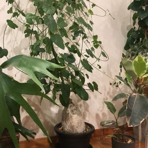 『 コーデックス』コンテストが開催されてるみたいので参加(*´ω`*) アデニア へテロフィラ。 アデニアはグラウカかグロボーサが有名ですが へテロフィラは見かける事が少ないのでお気に入り塊根植物の1つです。 この子は弦を巻き付かせるために支柱をU時にして刺してるんですが 全くもって支柱に絡まる気が無く 近くの塊根植物に巻きついて取り出す時に大変です😅 たまに枯れた弦を切ってやらないともじゃもじゃしてて大変な事になるので 伸びてきたら(✂︎`•ω•)✂︎チョキチョキ