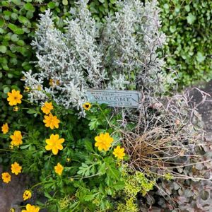 2週間程前作った寄せ植え ➃は、カロケファルスプラチーナ 昨年の寄せ植えのを 利用しました。 ❁💛ビデンスジュジュ (昨日投稿のもも😽と一緒のです) 🌿❁リシマキア ミッドナイトサンの 黄色のお花も楽しみですが、 葉色が良いですね。 🌴コロケア コトネアスターも魅力 (常緑小高木) 🌿カレックス ブロンズカール 葉先がクルン動きが楽しい 🌿❁ゴールデンタイムは斑入りで 可愛い 見えてないけれど、 🌿セダムが、脇に。