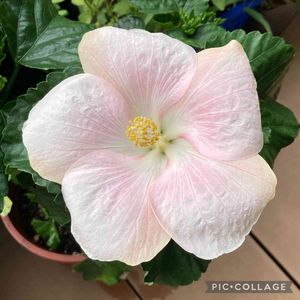🍀ハイビスカス アリサ 先週末、近所の園芸店で一目惚れ✨(๑♡♡๑)💕 もうすぐ咲きそうな蕾をつけていた子をお迎えしたら今朝咲いてくれました✧ (◍˃̶ᗜ˂̶◍)✩ 優しい色合いと丸みをおびた花びらに心が和みます🍵