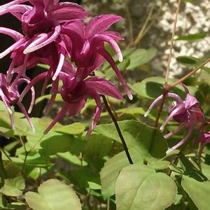 渋い色のイカリソウの交配種です。先っぽだけ色が濃くて可愛いです。