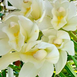 緑のセンターより♡ 🤍シンビジウム🤍 ホワイト❓クリーム色❓ 優しい感じがしますね🥰