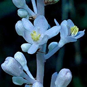 数日前久し振りの雷雨に庭が潤った日に… ① 雨粒がデッキのヒメミカンソウの 実の仲間入りして…🤭 ②③ トレニアにも愉快ないたずらを してくれました!🥳 かねーちゃんさんの 🏷️✨水滴は魔法使い✨ 初参加させて下さいね♡ 昨日夕方斜面で… ④⑤ 小屋のデッキ横の段々花壇に 白花藪蘭が数株涼しげに咲いていました 薄紫の藪蘭はお花が終わって 翡翠のような緑の実に なっている子もありました