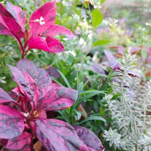 アルテルナンテラ レッドフラッシュ ネオンカラー 寄せ植えしてみたけど 横から見たらいい感じ😆