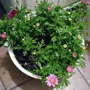 マーガレット・モリンバちゃん 枯れた花を付けて100円ってお店の隅にいたコ 2株で200円💕 花を切って、、、待ってました😆🎶🎶🎶 蕾もいっぱい💕花も咲いたよ〰〰🎵