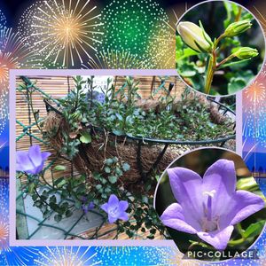 おはようございます🙋♀️ 30度に上がるって💦 夏といえば花火🎇今年PL花火も中止になりました 毎年の楽しみが ウワァァ—–。゚(゚´Д`゚)゚。—–ン!!!! 背景に花火を使って見ました‼️ 💜 カンパニュラ“メリーベル”💜 キキョウ科ホタルブクロ属 昨年はあまり咲かなかったけど 枯れてなくなった?と諦めていたけど 可愛いく、涼しそうに蕾やお花をつけています💜
