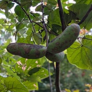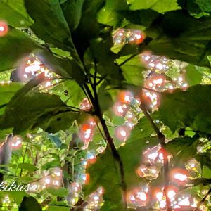 今日のお花🍀アケビ 雨が止んで晴れ上がったので ドッグランの奥のアーチの木通を 見て来ました 7月からつき始めた実が 10個ぐらいありますが 食べ頃はこの実が割れたららしいですね 鳥さんと競争で美味しそうなのを採って あとは鳥さんにあげましょう デッキの姫蜜柑草は 雫がいっぱいでキラキラ 葉っぱはかなり落ちています 🏷️花シャンデリア♪ を付けますね🎶 お気軽にお使い下さいね♡