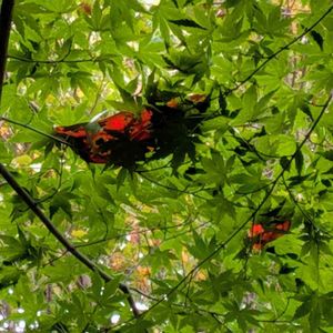 デッキで ジューンベリーの葉の間から陽が覗いて 午後のシャンデリア✨✨ 🏷️【額縁シリーズ】 🏷️花シャンデリア 今日は四十雀がやって来ました 庭の奥にイロハモミジの紅葉が いよいよ始まっているのが見えました 未だ黄色い色付きが主ですが 葉っぱの1片だけ赤くなった子がいました🤭 🏷️グリーンアクセサリー♪…に これからこのイロハモミジが 「錦の美」を見せてくれると 我が庭のクライマックスになる事でしょう…