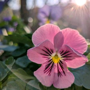 1️⃣2️⃣ ビオラさん夕日に輝いて… 🏷️花シャンデリア♪ 3️⃣ 瑠璃茉莉さんは 朝開き始めた蕾が 夕方に咲きました 4️⃣5️⃣ (番外編) 山雀さんは夕方になってもコンコン… 貯食にも勤しみます ここにはもう大分貯まったでしょうに…