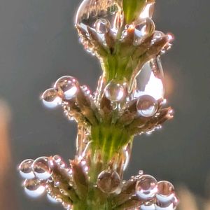 3日前にツクシを見つけましたが、今日は素敵なスギナ 昨夜の雨でキラキラのクリスマスツリーになりました 🏷️花シャンデリア♪に