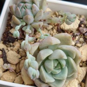 毎月13日と14日は葉挿しの日🏷 参加します💕💕 明日は久々に、昔の職場の同僚とランチの予定で その友達も最近多肉植物🌵にハマってるって前に聞いたので 根を乾かすのに抜いてある、葉挿しっ子右下の子たちと右上の鉢ままプレゼントしようと思ってます😆 鉢ままあげようと思ってる子 これ、初恋だよね?? 胴切りしたのから出てきてるんだけど 寄せ植えバラしてから、何が何だか わからなくなってます😑😑 葉挿しっ子は、左のから2つずつ抜いた後の状態💕💕 左の1番上も、初恋?? 朧月系だなぁってのは、わかるのだけど… 赤ちゃんの紫っぽいピンクが良い感じで、形も良く芽が出てるから、お裾分けだー👍 夏にはこんなに、誰かに分けてあげられるほど増えてくれるなんて努努思ってなかった😅 ちょっと自信になって来てます🥰 明日、会えるの楽しみだー✨✨