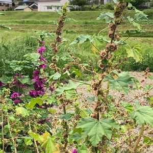 ゼニアオイがたくさん咲いているすぐ隣で、同じような葉っぱの植物が自己主張していた。 遠くから見た時は、雑草にしては自己主張はげしすぎると思ったので、車を止めて観察してみた。 葉っぱはゼニアオイっぽいけど、たくさん付いている花みたいなのは、花なのか? 実なのか? それさえわからず。 こうなりゃ調べて見なきゃ気が済まない。