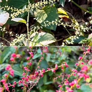 ミズヒキ 花言葉は慶事、祭礼 10月1日、9:43の赤ミズヒキ 10月14日、15:36のフイリシロミズヒキ 🏷今日のお花 🏷白い恋人達 🏷最愛の友へ届け 🏷明日はきっと良い日になる