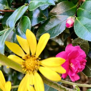 ツワブキ サザンカ 花言葉は困難に負けない、永遠の愛 11月9日12:33のツワブキとサザンカ 🏷日曜ビタミンカラー♪ 🏷ピンクワールドへようこそ 🏷ビューティフルサンデー 🏷最愛の友へ届け 🏷明日はきっと良い日になる