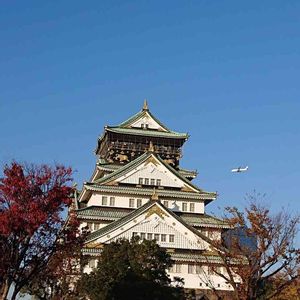 今晩は 先日の大阪城🏯 紅葉と飛行機です✈️