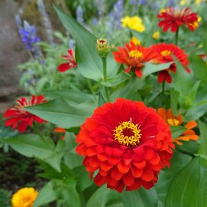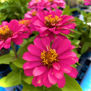 今日のお花 ヒャクニチソウ(ジニア) 右上のオレンジは買ったのですが 後は種蒔きっ子達です🌱