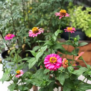 色々な色の ジニア(百日草) 暑さに強いお花、頑張って咲いてくれてます🌼*・ 5月から11月頃まで長い間、咲いてます❀ 𓂃𓈒𓏸 ピンクも可愛いです🎀💗