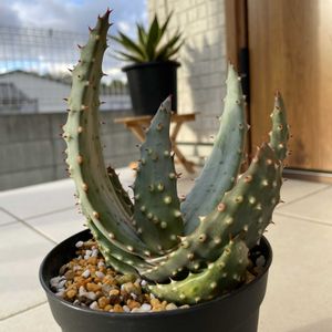 ゆっくり成長するアロエたちがカッコよくなって来ました😆 お迎えした当初、鬼切丸は2号のポリポットで握り拳👊くらいしかなかったけど、今は広げた時の手の大きさより大きくなってます✋ プリカティリスもお迎えした2年前に比べて2倍くらいの大きさになってます✌️幹立ちするくらいになるまでにはまだまだ時間がかかりそうですが、ゆっくり成長を見守っていきたいと思います🐢