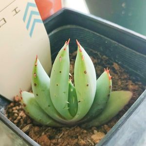 アロエ ダイソーでやっと見つけた! アロエに関心を持ち出して1年なのですが、ホームセンターにはあまりなくて手を出せずにいました。 探してたよ〜、嬉しい! ぷりぷりの赤ちゃん👶といった姿でとてもかわいい。 鬼切丸だ!と思って買ったのですが。。 鬼切丸はマルロシーとクロウジアナがあるとか。 棘が白いのがクロウジアナとか。 さらに色的にはペグレラエに似ている? 似てる子でライツィーもあるらしい。 クラビフローラってのにも似てる? いずれにせよもっと大きくなってからですね。