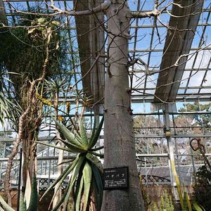 はままつフラワーパーク、大温室クリスタル・パレス。 バオバブ、いました〜😆🎉 まだ若い木なのかな?スリムです♪ 早く太って〜〜💕 隣はまたすごいお名前・・鬼切丸(おにきりまる)だそうです👹✂️⭕