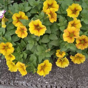 歯科医に行く途中のお宅に3週間前には無かった ペチュニアカリブラコアが咲いていました 元気の出るビタミンカラー🧡🏵️💕🍀