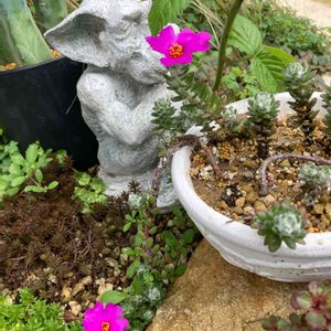 お母さん、ポーチュラカウエルデルマニーの花が咲いたよとガーゴイルから聞かされ見てみたら2つ可愛いお花が咲いてました♥︎︎∗︎*゚