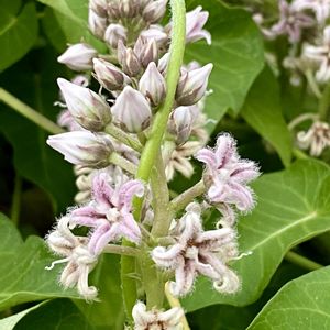 散歩道に繁茂しているガガイモの花です。 おとなし目の色、毛むくじゃらな感じ、昨年まで、申し訳ないけれど、関心が薄い花でした。 でも今年、この花の綿毛が、一度は見てみたいと思っていた、あの、見ると幸せになるという「ケセランパサラン」の正体だった〜と知って、めちゃくちゃ注目しています💦 ・・初冬の頃、割れた茶色い鞘の中から、真っ白いケセランパサランがふわっと風に乗って飛び立つのだそうです・・見てみたいなぁ・・😍