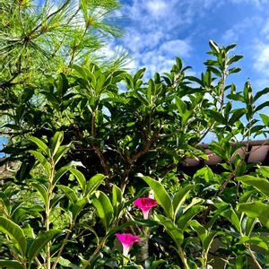花友おじさんのお庭のアサガオ🩷 おーい どこまで伸びるの 天まで届けヽ(^0^)ノ 🏷️おしゃれな土曜日♪ 🏷️愛の花♡ 🏷️みんな最高 🏷️一期一会のお花♡