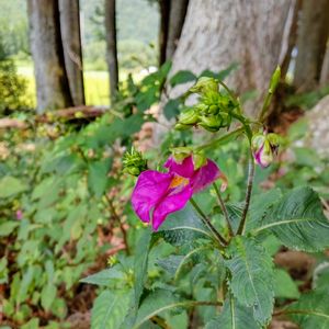 ツリフネソウ (ツリフネソウ科) 直ぐ下に流れの速い小川が有ります。足元に注意して🤳。 この辺りの花は濃い赤紫色です。
