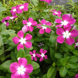 おはようございます☔ 道路の街路樹の下にニチニチソウが咲いてました🌺