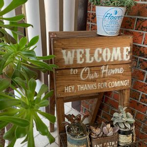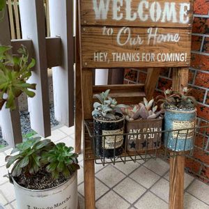 玄関に置いてあるお気に入りの看板プランター(☝︎ ՞ਊ ՞)☝︎ もふもふちゃん達を置いてます。 真ん中のブラウニーちゃんは最近お迎えした子です(〃ω〃)