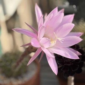 おはようございます✨ エキノプシス属サボテンが満開です。 上、金盛丸 下、仮称、桃花短毛丸