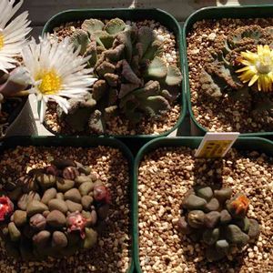 緑亀の卵の黄花、玉蓮の白花💠開花中😊 姿は似てても色味はまったく異なり、 並べて育てると楽しさアップ👍 ↙️ドリミオプシスマクラータ。 車庫の隅で冬越して、またまた増えた😅 画像外にもまだまだあります。 ↘️ラウィの鉢にいつの間にか生えてきた たぶんフェネストラリアの群玉。 いい加減よそに行ってもらいます😅 増やしたい鉢では増えないくせに・・・