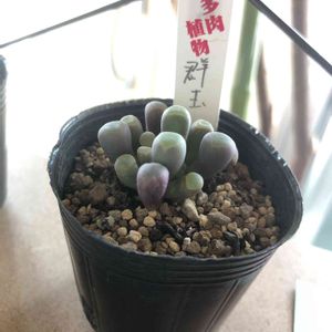一昨日…風で表土がガッツリ削られ、根が出る寸前… そして皺っ皺のカッピカピだった群玉グンちゃんです。 新しい土を足して、たっぷりお水あげました。 3月に買った時、うっすら紫色が可愛かったのは寒さで紅葉していたんですね〜😊 赤紫の葉がちらりほらり。 最初の頃のやや懐かしく可愛らしい姿に戻ってます。 2日経ってようやくぷりぷりに戻ってきました✨