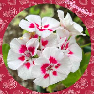 スーパーゼラニューム チャンピオン すごい名前です 雨上がりで、一枝で丸く塊になって可愛く咲きます💞 幸せの象徴,芯の赤い模様のゾナール系レッド満開です