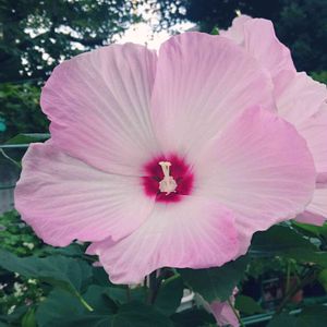おはようございます🌄 今日のお花、フヨウ🌺😃 こちらは大きなアメリカフヨウ、遠くからでも目を惹く美しさでした🤍🌿😍 今朝は涼しい朝となりました😊 気温差に風邪をひかないようお気をつけてくださいね😉