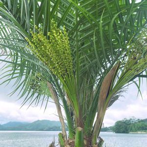 温室入口から入つて直ぐのシンノウヤシ🌴 Phoenix roebelenii🌴 昭和十二年開園時からの個体らしいです。 導入時の大きさは不明ですが樹齢100年近いと思うと凄いですね。 葉を入れると10m位ありました。 後、ロベ🌴は結構寿命長いんですね。 ヤシ🌴の寿命つて結構短い種が多いらしいのですが。