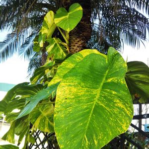 フェニックス(phoenix roebelenii)とポトス(pothos) 🌴フェニックス-ロベレニー ヤシ科、ナツメヤシ属 原産地: 東南アジア ⚫️高さ2~3㍍の小型サイズ。 ⚫️ヤシ科は世界に約200属、約2680種 🌕花言葉は「躍動感」➰葉が元気よく四方に広がる様子が由来。 🌿ポトス(黄金葛)(オウゴンカズラ)(Devil's ivy)(Golden pothos) (Epipremnum auream) サトイモ科、エピプレムナム属 原産地:ソロモン諸島、東南アジア 🌕花言葉は「華やかな明るさ」「永遠の富」「長い幸」 ✴️前ヒーでも掲載。こちらは、1週間前の撮影。前ヒーの時より、葉っぱが大きくなっている! ✴️うちにもいる。柿ノ木に、這い上がっている。
