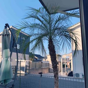 10年間室内で育てて痩せ細って元気がなくなっていたロベレニーを去年地植え🌴 最初は全部葉焼けしたけど元気になりました🏖
