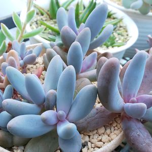 パキフィツム キャンディグレープ ガンゾー、キャンディーグレープ と名前があるみたいねw ガンゾーも持ってるよ🤣 春にカットして挿した子達✨ 未だに1個、不調だけどもw 粉も多めで紫の葉も隠れてる🤣 冬に販売しようと思ったけど もっと増やしたいし可愛いから 手元に…🤔‼️うんそうしよう🤣