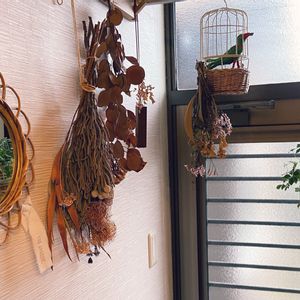 ( ⸝⸝⸝•_•⸝⸝⸝ )♡︎♡︎ ドライコーナー? 紫陽花のリースも色褪せたまま まだ飾っています ワタシ的には🆗なんですが 飾ってていいのかな?