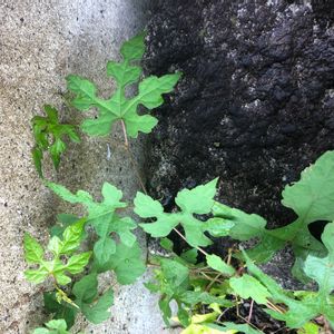 ①②切葉野葡萄🌱 キレハノブドウ 舗道植栽の中 花3〜5㍉。5弁花🌼葉の切れ込み深い🍃 雨間にスーパーへ買物🛒。 いつもの道に見慣れぬ葉と花🌼🌼 👀間近で花見られるなんてラッキー✌️✌️ヽ(´▽`)/