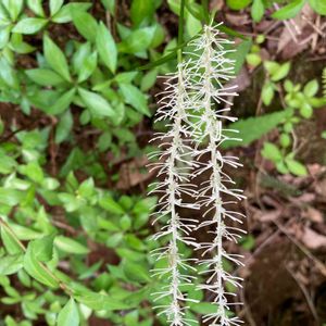 シライトソウ 5/21撮影 昨年にお寺の境内で見て初めて知ったシライトソウ… まだ早いと思っていたら、ちょうど見頃でした🤗 花房の花が咲いている部分の茎は、白っぽい色になっています。 まるで試験管ブラシ🧪みたいですね🤔 シュロソウ科シライトソウ属