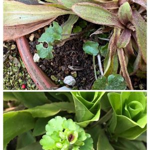 去年シライトソウの鉢の中で見つけたグリーンプードルことネコノメソウ🐈 救出は出来なかったけれど今年も芽を発見しました🌱