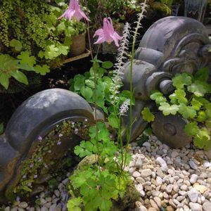 こんにちは~🤗 オダマキ、シライトソウを軽石に植えています。 ちょっと伸びすぎ😆