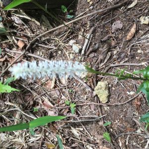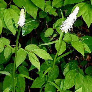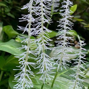 シライトソウ(白糸草) *ユリ科シライトソウ属 花期は4〜7月 本州 中部以南.四国.九州の山地に生える 写ってはいませんが、ショウジョウバカマのような葉からこのブラシのような花が出てきます! 山形市野草園内