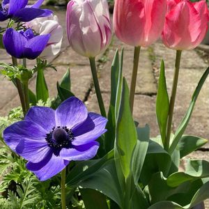 連投すみません🙏 球根のアネモネとピンクのチューリップ ようやく咲きました✨ 🏷春色の青い花2023 🏷愛しの紫 🏷春色チュ!チューリップ 参加します(^^)