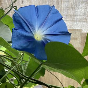 西洋アサガオヘブンリーブルー💙 7/15のpicです ツルばかり伸びて花はこのときとその前に1度咲いたきり😂 あまりの猛暑に水切れを何度も起こし、葉っぱも黄色くなり、蕾も全然大きくなりません😮💨 幻の花になりそう…💦 🏷️ブルーな月曜日 🏷️青い花で夏祭り2028