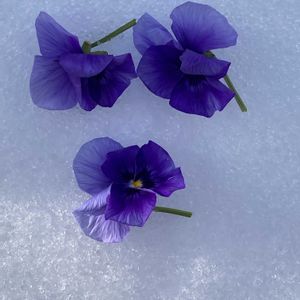 チーム・ブルーの花友さんにキリ番のお祝いです🎉 ㊗️hirocoさん1400picおめでとうございます💐 小輪パンジーペルクレアでお祝いさせてね♡ 2枚目は今朝の枝に積もった雪の花です❄️ これからも素敵な投稿を楽しみにしています💙 🏷️ビオラ・パンジー祭り♪ 🏷️青い花で新年会2025 🏷️癒しの薄紫 参加させていただきます♪