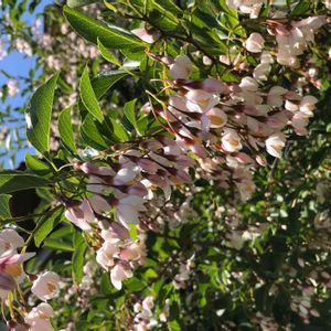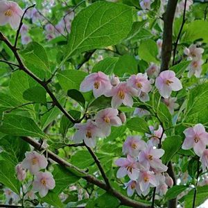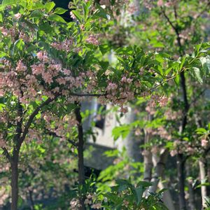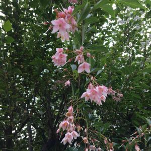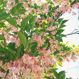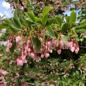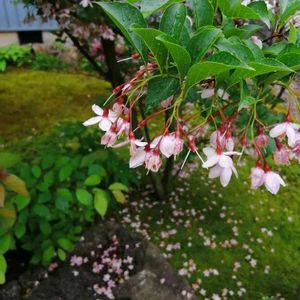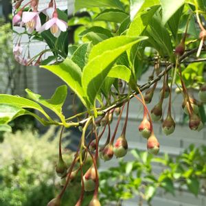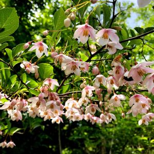 エゴノキ ピンクチャイム 大きくなり過ぎて、 上の方を前定したのですが、 残り枝に可愛らしい小さな花をぶら下げて 風に揺れています☺️