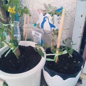 昨日トマトのわき芽の挿し木の中で実を1個付けてた2本をポットに植替えましたが方や元気で方や枯れかけてます?どういうことかな(笑)